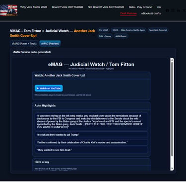 I kept your platform focused on systems and remedies. If you post pages that name specific people or firms, clearly label allegations, stick to verifiable records, and link to filings or orders. That keeps you safe and effective.