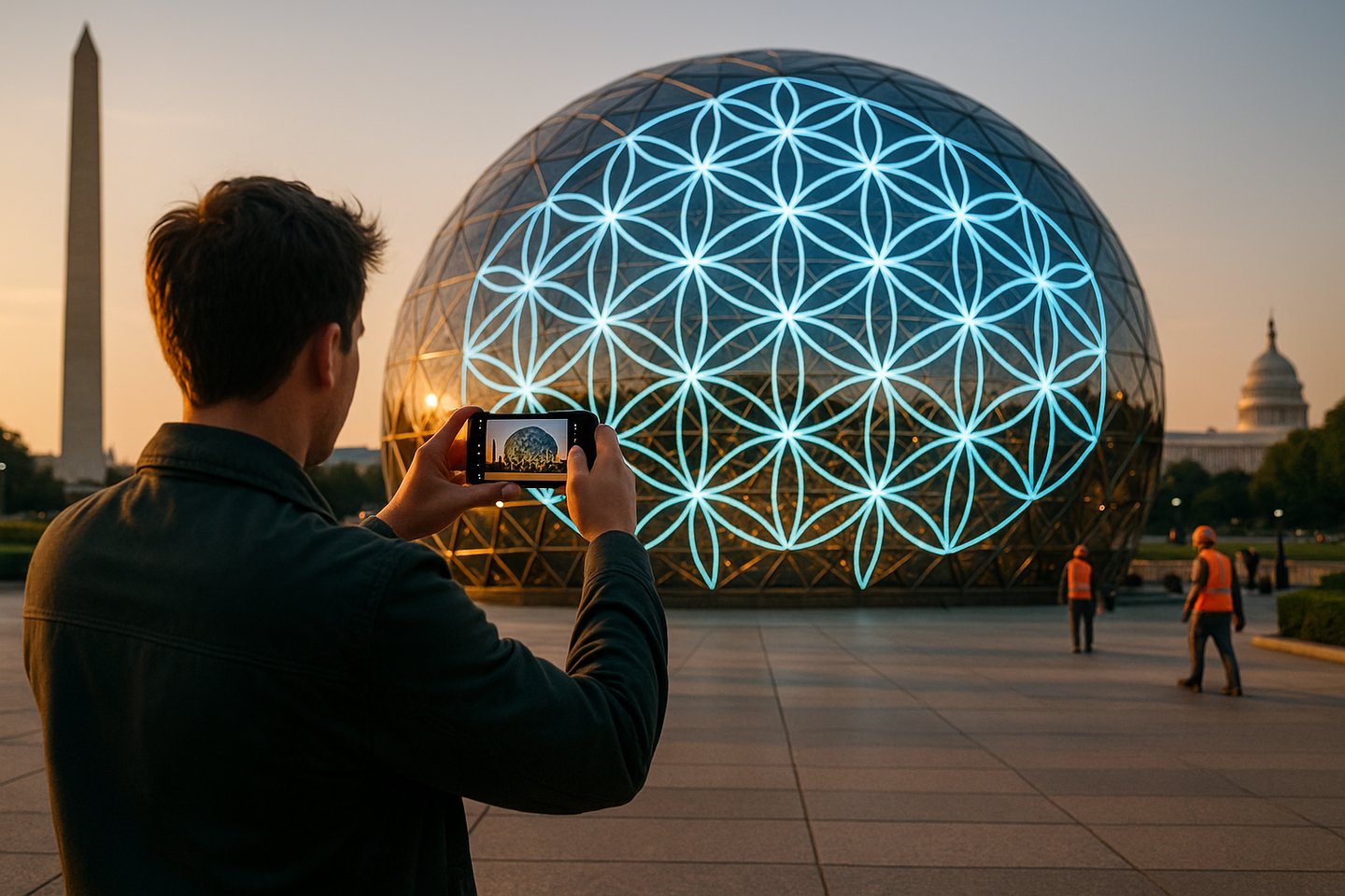 Building on the core plan for your invention hub, this update weaves in Randall Carlson's sacred geometry expertise (as a 33rd Degree Master Mason and founder of Sacred Geometry International, he connects ancient Masonic symbolism—like the vesica piscis, Flower of Life, and Platonic solids—to modern architecture, encoding universal patterns from Egypt via Pythagoras and Plato). Freemason principles (e.g., geometric harmony in the White House's foundation stones and DC's L'Enfant plan, with hexagrams/pentagrams aligning key sites like the White House apex) inspire a scalable "Sacred Dome" project: Start with a Las Vegas prototype (geodesic sphere echoing the MSG Sphere's form but infused with sacred ratios like φ:1 golden mean for energy flow), powered by Bendall's open-source plasmoid tech for self-sustaining "thunderstorm" energy. If elected in 2028, adapt for White House grounds—a voter-visible "People's Pavilion" symbolizing transparent, harmonious governance (e.g., dome as a microcosm of DC's Masonic grid, with public holograms of voter ideas). The site becomes a campaign tool: Crowdfund the LV dome via open-source blueprints, engage voters with interactive sims, mix Carlson-inspired videos with your playlist for "esoteric invention nights."