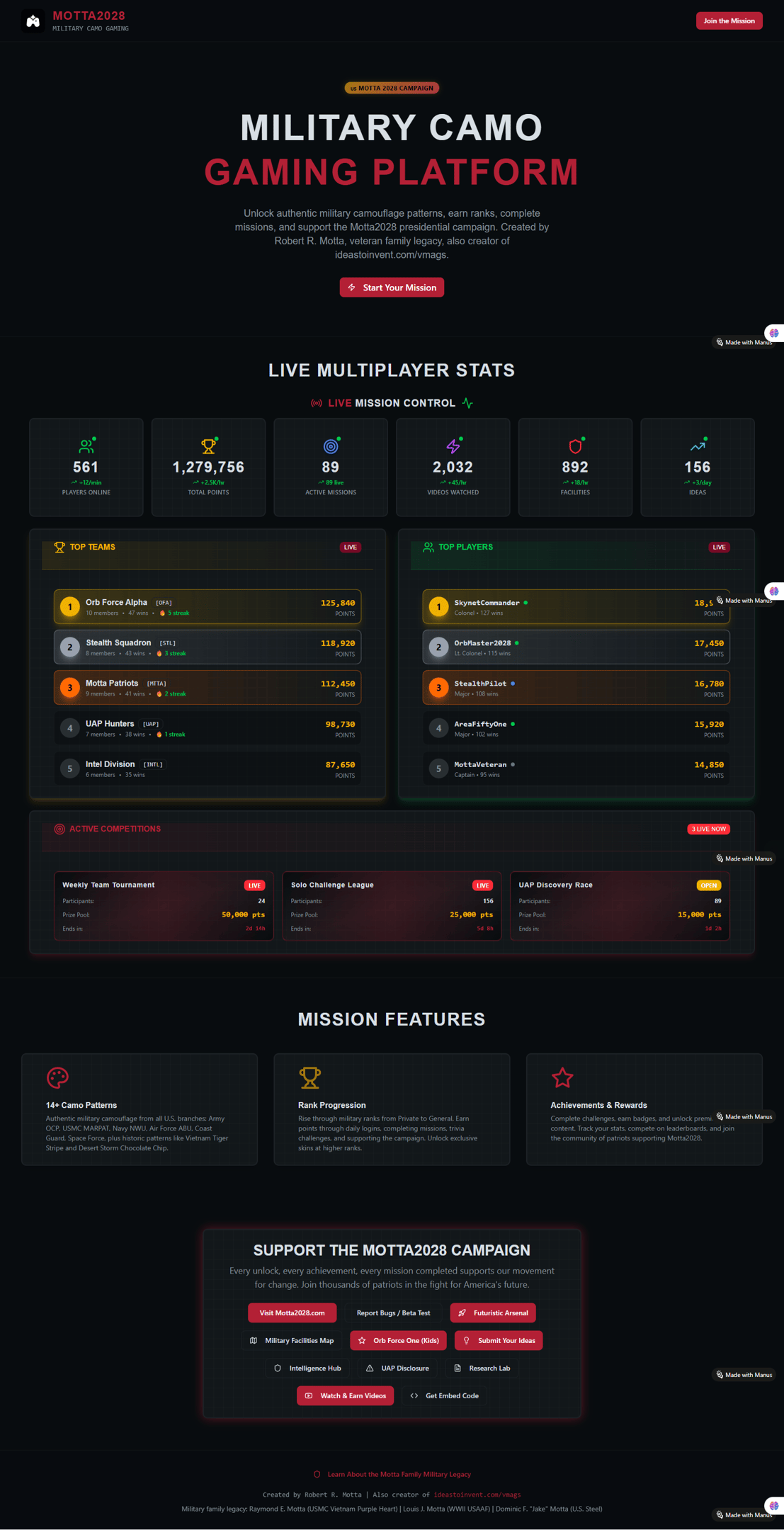 Why Me? I'm Trump's heir—pro-veteran, pro-innovation, anti-elite. My family's service (Raymond's courage) mirrors Trump's fight against the deep state. Elect Motta2028: I'll make Trump's 2025 miracles permanent while unleashing Musk's genius. No more delays—**Motta for Momentum**. Tweet me your thoughts: @Motta2028. Let's GOAT this! 🇺🇸